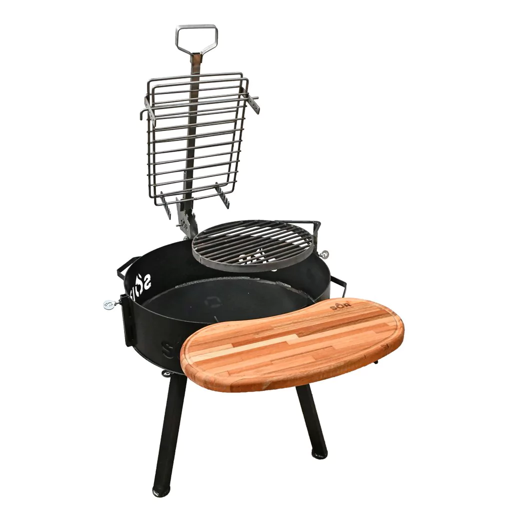 Descubre el Fogonero de 67 cm de diámetro, un complemento esencial para tus asados. Diseñado para ofrecerte la mejor experiencia en parrilla, este fogonero incluye una parrilla redonda desmontable de 40 cm, ideal para cocinar carnes y verduras a la perfección.